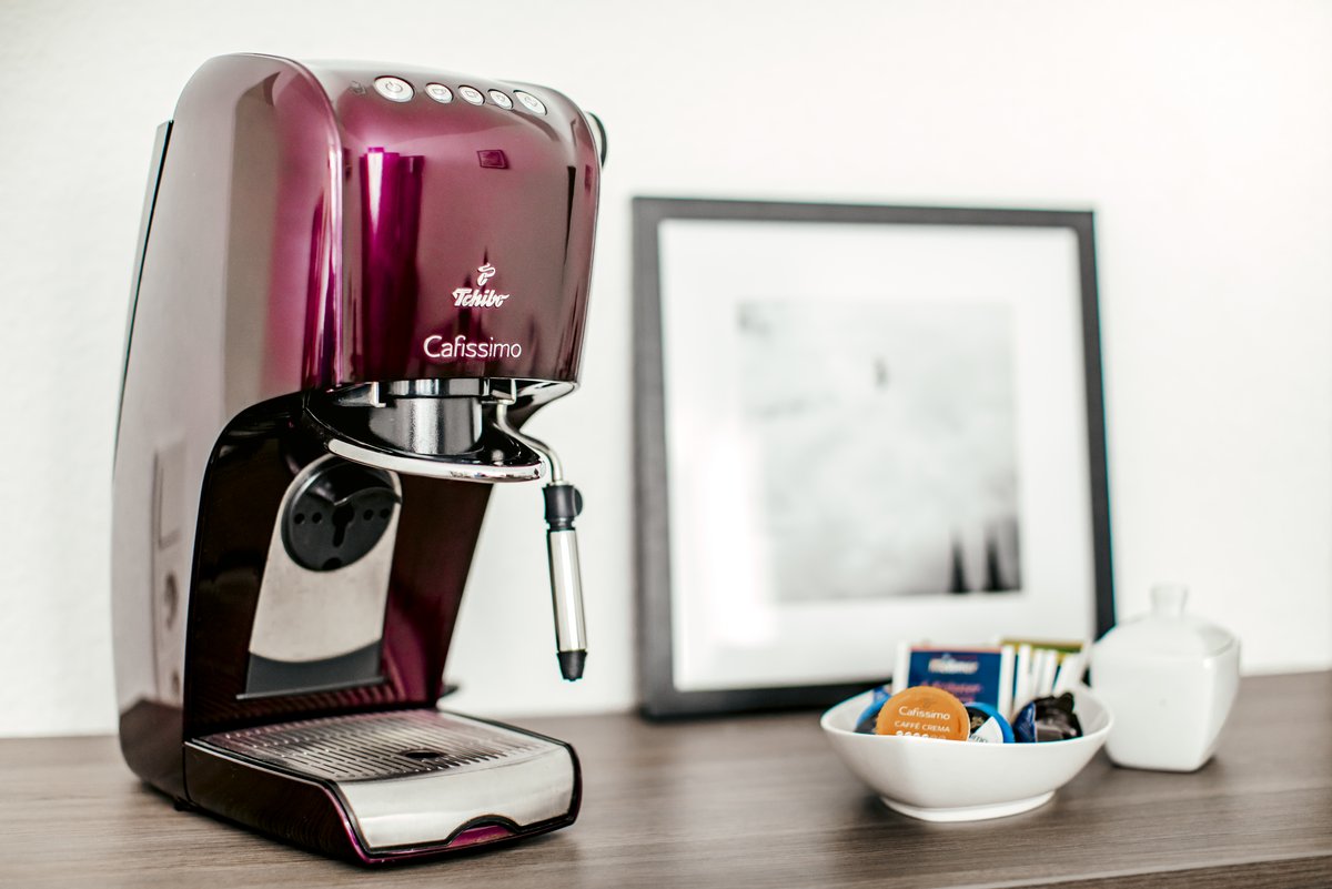 - löffelfertige Kitchenette mit Kühlschrank, Mikrowelle, Cerankochfeld und Kaffeemaschine